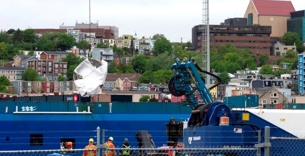 Imágenes captadas por la radiotelevisión pública canadiense CBC muestran las grúas del Horizon Arctic descargando a primera hora del miércoles grandes piezas del Titan en el puerto de San Juan de Terranova.