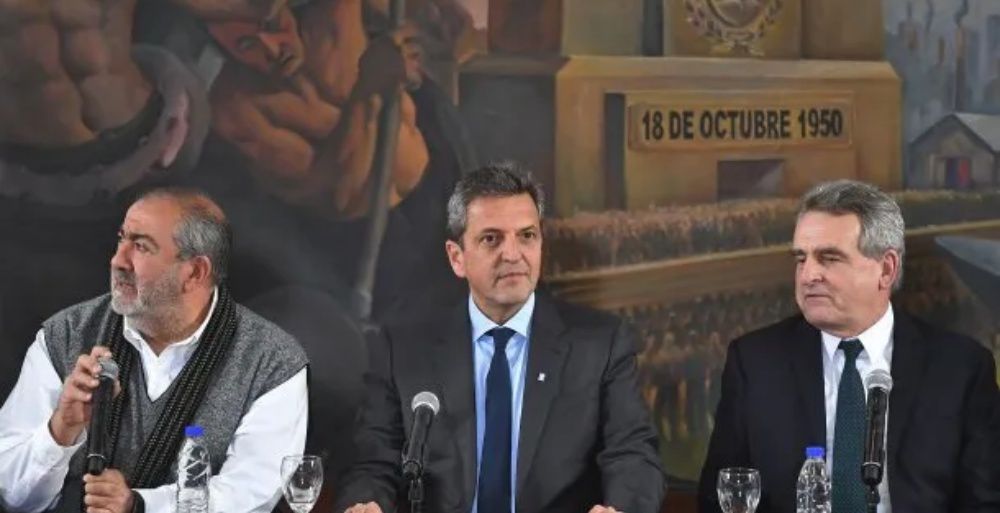 El ministro de Economía y precandidato a presidente de Unión por la Patria (UxP), Sergio Massa, llegó a la sede de la Confederación General del Trabajo (CGT) junto a su compañero de fórmula, Agustín Rossi, donde ambos mantendrán una reunión con la cúpula de la central obrera.