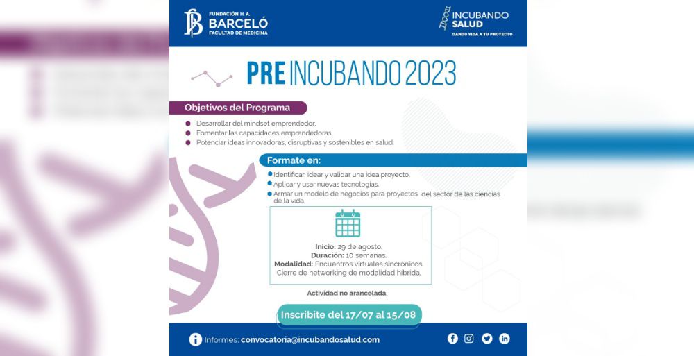 En línea con este escenario, Incubando Salud lanza el 29 de agosto del corriente año el Programa NO ARANCELADO PRE INCUBANDO 2023. Los interesados en participar, podrán pre inscribirse desde el 17 de julio.