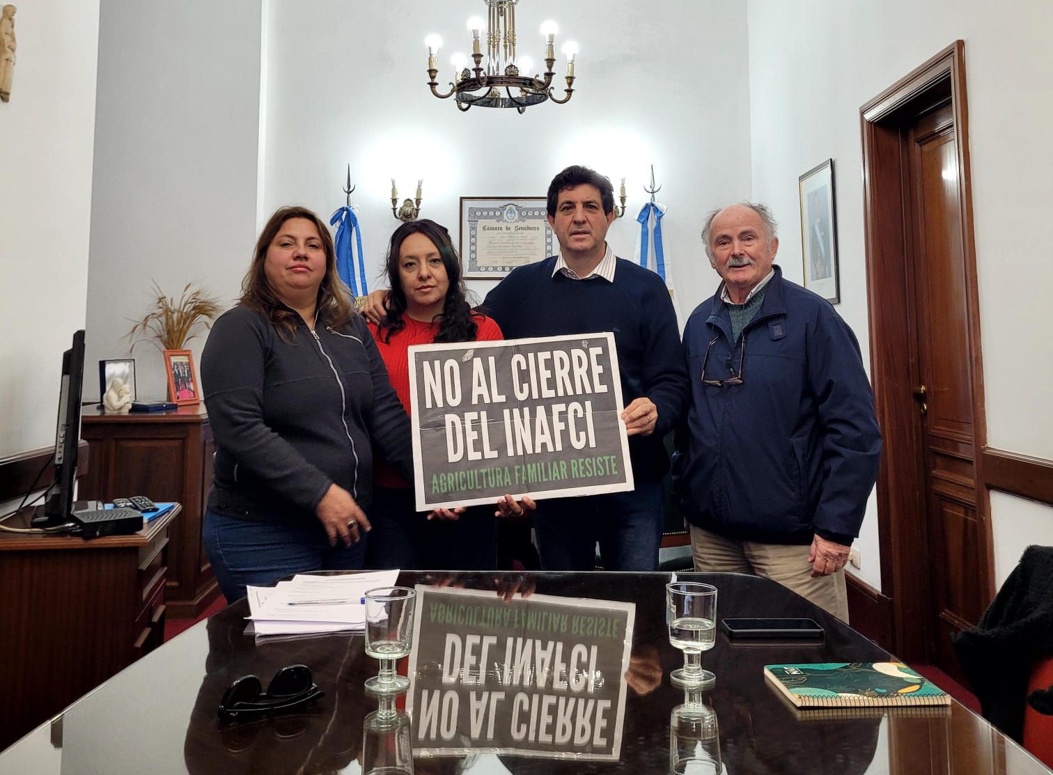 A la reunión asistieron en representación María Macías y Analía Oviedo quienes expusieron el inminente cierre del instituto, que resultaría en más de 900 despidos de profesionales veterinarios, ingenieros agrónomos y otros, con más de 20 años de antigüedad.