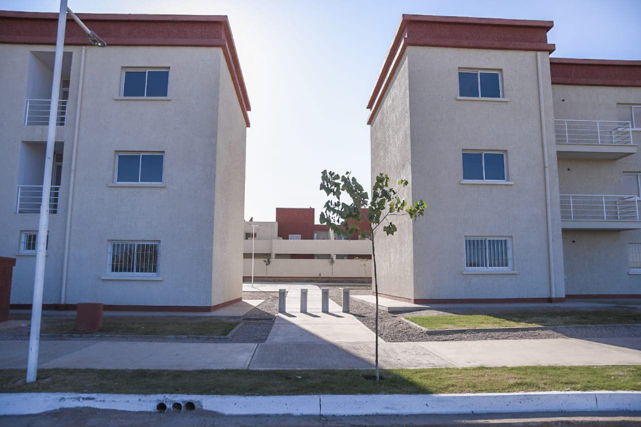 El complejo de construcción innovadora, representa un nuevo concepto habitacional del desarrollo urbano integrado y planificado que tiene como propósito que más familias riojanas alcancen el sueño de la casa propia. Está ubicado en la zona sur de la Capital, un sector de mayor expansión urbana, con vista al Cordón del Velasco y a 15 minutos del centro de la ciudad. El mismo se emplaza en dos manzanas, con viviendas y departamentos de diferentes tipologías arquitectónicas, de construcción tradicional y amplios espacios interiores, patio sobre superficie y en altura, cerramiento que brinda privacidad respecto de las demás unidades, termotanque y cisterna individual con kit de bombeo. En tanto que las viviendas son de 3 dormitorios –111 m– planta baja; y de 2 dormitorios –103 m– planta alta. Mientras que los departamentos se componen por 3 dormitorios –98 m y por 2 dormitorios – 75,10 m.