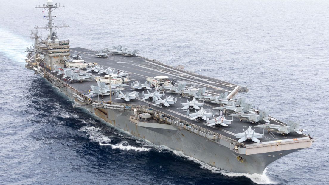 Se señala que hay nueve escuadrones de aviones a bordo. Además del portaviones, el grupo de ataque incluye un crucero de misiles y dos destructores.