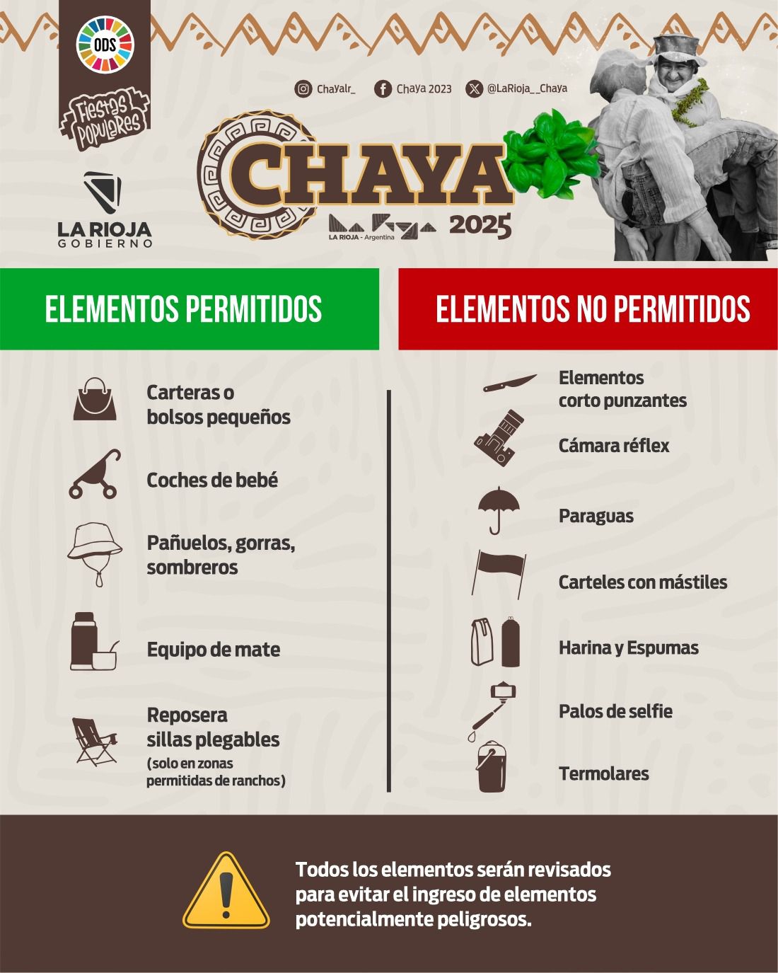 Cabe remarcar que todos los elementos serán revisados para evitar el ingreso de elementos potencialmente peligrosos.