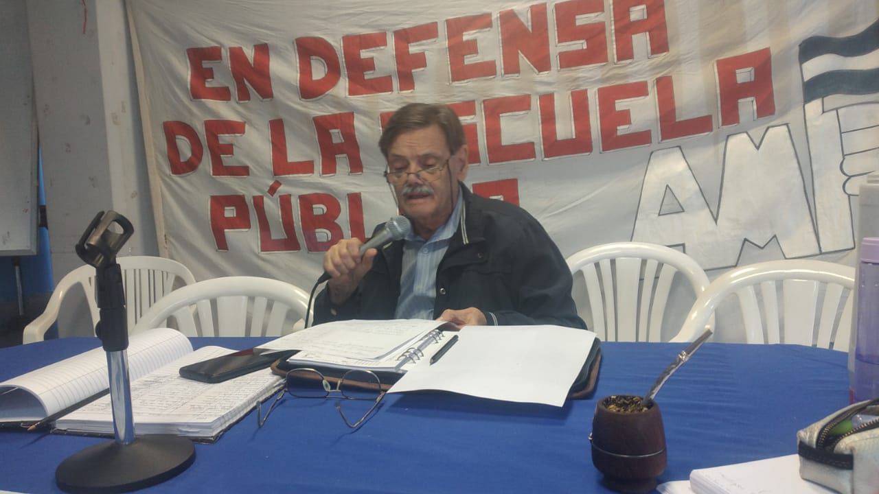 El móvil de Radio La Ciudad asistió a la conferencia de prensa brindada por el titular de AMP en donde confirmó la adhesión del gremio docente al paro general nacional convocado por la CGT para este jueves 10 de abril.