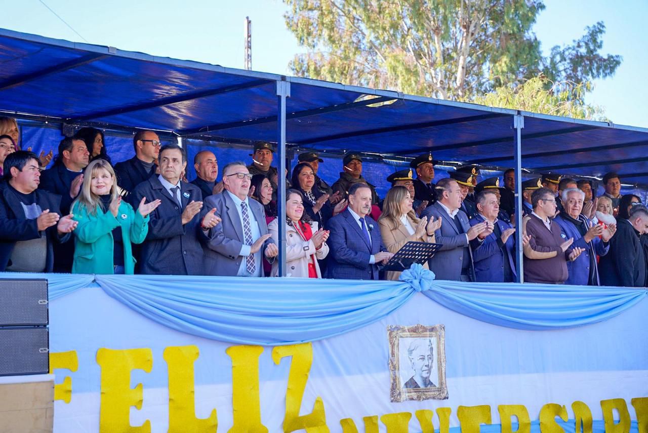 El gobernador Ricardo Quintela presidió este miércoles los actos conmemorativos por el 139° aniversario del Departamento de Rosario Vera Peñaloza, acompañado por la vicegobernadora Teresita Madera, la intendenta Laura Carrizo, diputados provinciales y autoridades locales, además de representantes de Gendarmería Nacional, Policía de la Provincia y de la Iglesia.