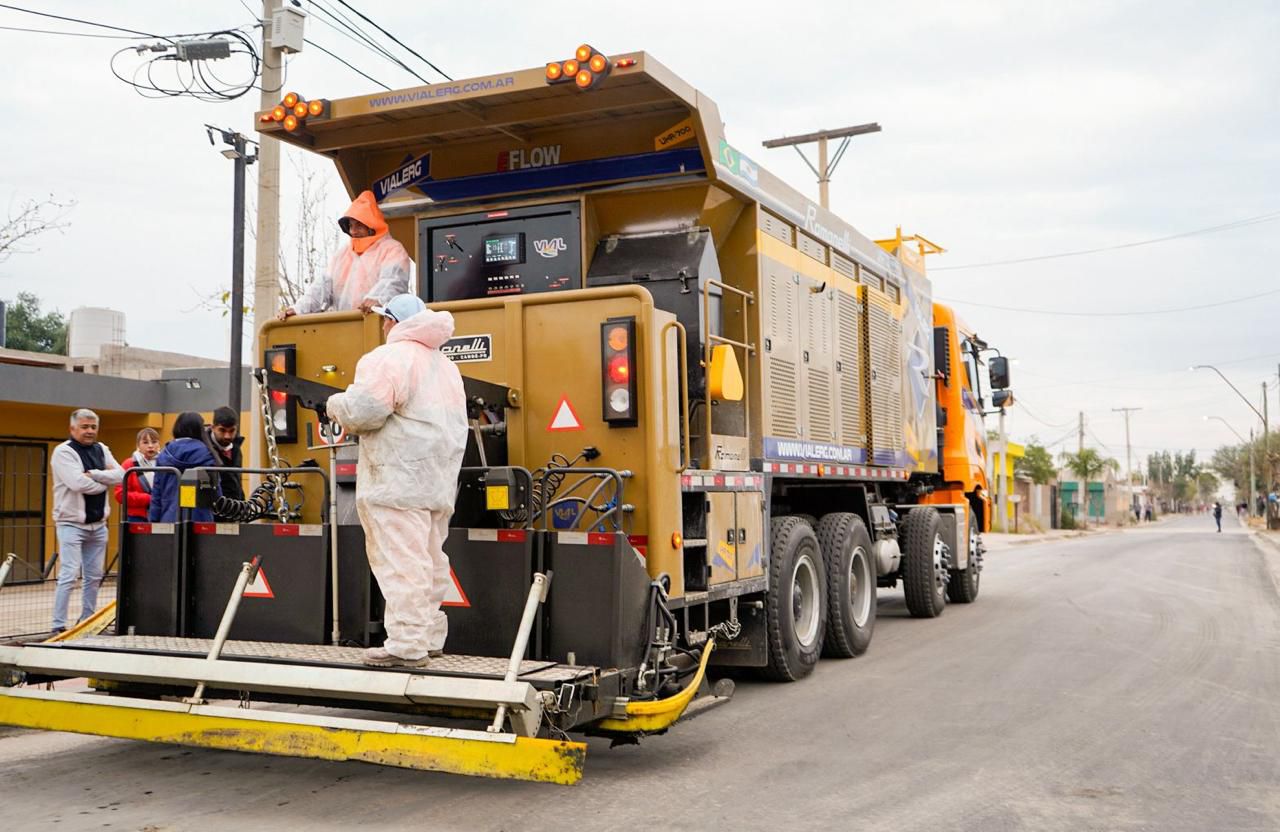 El administrador de Vialidad Provincial, Jorge Escudero, brindó precisiones técnicas sobre el trabajo que se está desarrollando. “Se trata de un microconcreto en frío, un tratamiento que mejora, renueva y recupera la carpeta de rodamiento para prolongar su vida útil”, explicó. Además, señaló que “está previsto aplicarlo en todo el barrio, lo que permitirá recuperar integralmente la zona en un plazo aproximado de 15 días, con una inversión menor y mayor rendimiento”.