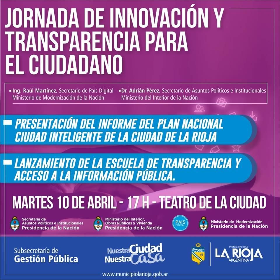 Al respecto del espíritu de estas jornadas, el subsecretario de Gestión Pública, Eduardo Matzkin indicó que “esta jornada será en el marco, más allá de la transparencia, que planteamos desde el Ejecutivo Municipal, una iniciativa que tiene que ver con que el ciudadano esté informado, y cuáles son sus derechos para que de esta manera nos exija a nosotros, que somos los servidores públicos, de qué manera tenemos que realizar nuestra tarea, pero incluso va más allá de esta iniciativa tiene que ver con la construcción conjunta de lo que pretende nuestro Intendente Alberto Paredes Urquiza que es que La Rioja sea una ciudad inteligente”.