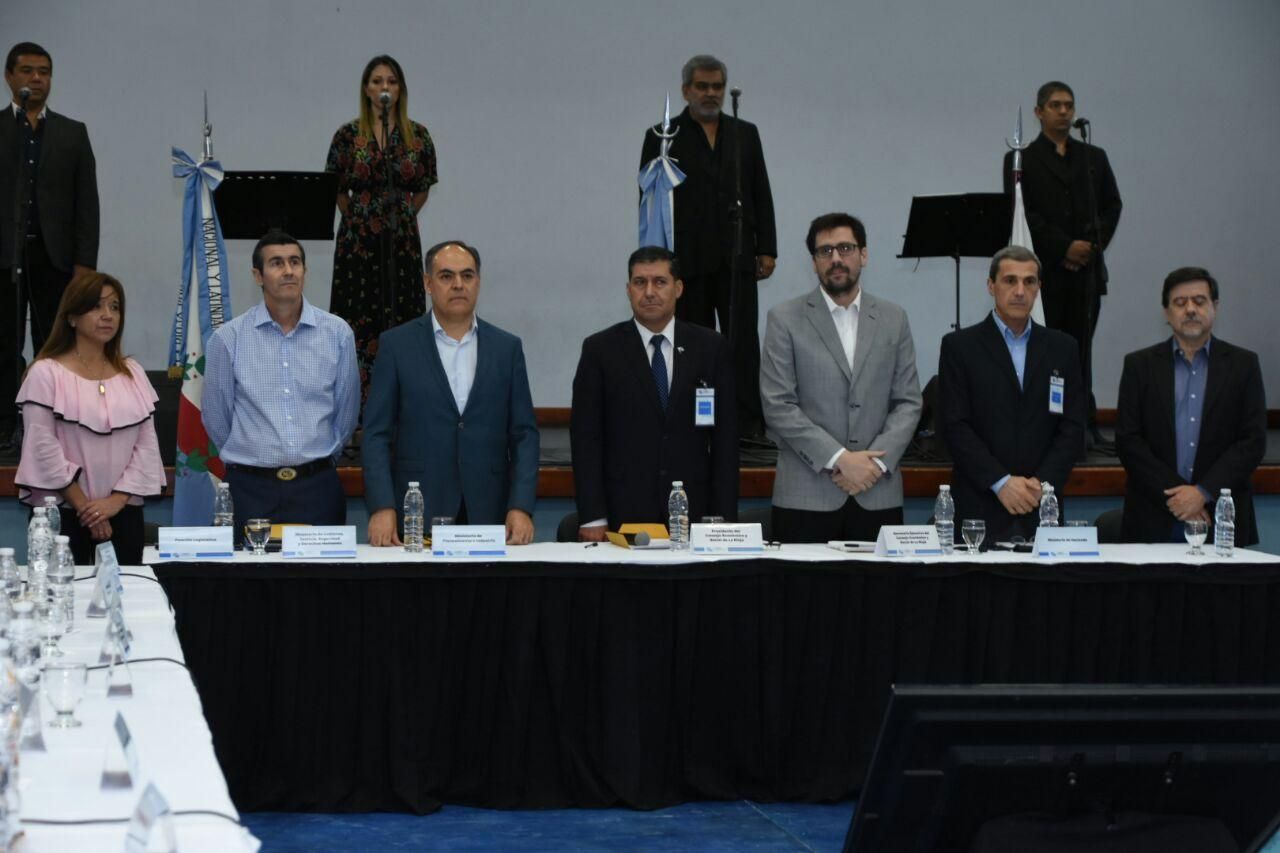 El acto de apertura comenzó con la entonación de los Himnos Nacional y de La Rioja. A continuación, las palabras de bienvenida estuvieron a cargo del vicedecano de la Universidad Tecnológica Nacional, Carlos Vicente, quien destacó la importancia de la iniciativa y resaltó el papel trascendental de las universidades en esta institución, que a través del debate serio y responsable buscan respuestas a los distintas problemáticas de la sociedad riojana.