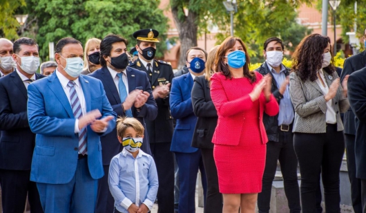 LA RIOJA.- La población de la Capital pudo apreciar anoche a partir de las 21, fuertes luces lanzadas desde torres levantadas en seis puntos estratégicos de la ciudad, cruzando el cielo, con el espectáculo de luz y sonido "Destellos de mi Rioja", con que el Gobierno celebró el aniversario 429 de la provincia, respetando el aislamiento social por el Covid.